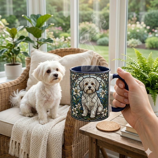 Stained Glass Maltese Coffee Mug — Ivory White Accent 11oz