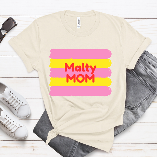 Malteser Mom Retro Pink & Yellow Brushstroke Premium Tee