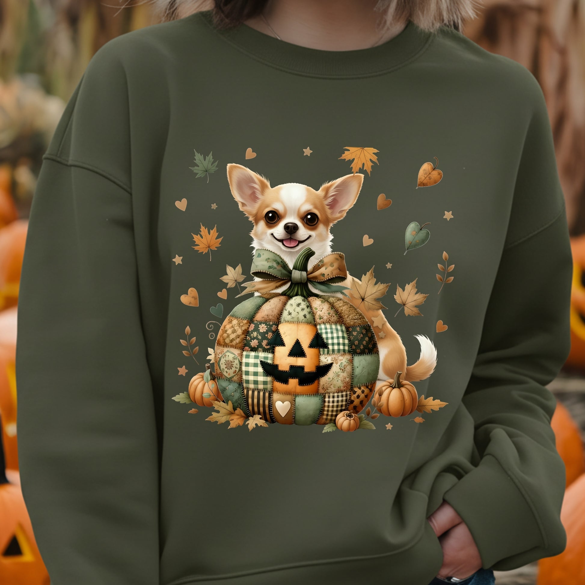 Celebrate cozy days with this charming Chihuahua sweatshirt, featuring a patchwork autumn design and adorable dog motif. Perfect for small dog lovers, it's super soft and ideal for snuggling all fall long. Limited edition – make every season a cozy Chihuahua season.